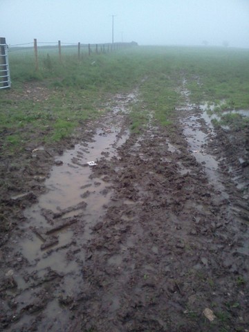 Whatever the figures might or might not reveal the practical upshot is that despite being sited at the top of a hill and with relatively shallow underlying stone the ground was saturated and already badly churned up by both farming plant and the livestock that normally inhabit the field.
