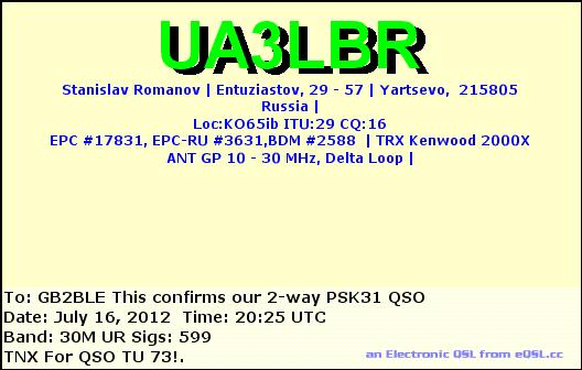Below are some of the QSL cards we have received through the eQSL (and other) systems.